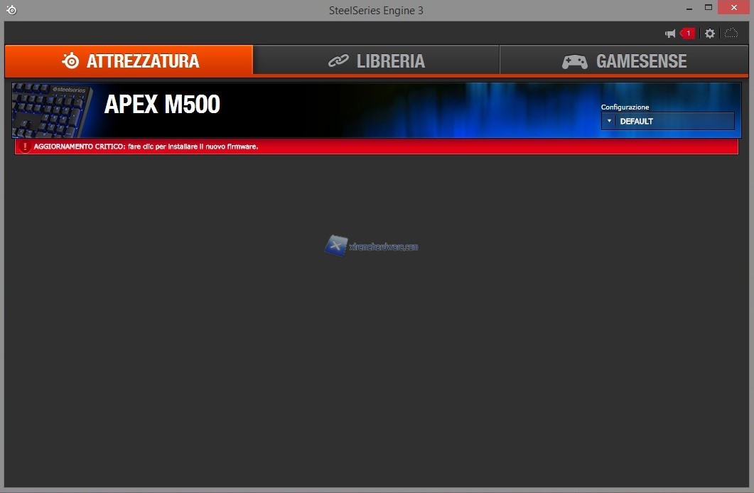 Il software di SteelSeries al solito è caratterizzato anche dalle Tab ‘’Libreria’’ e ‘’GameSense’’. Nella prima potremo creare e modificare differenti profili collegati alle applicazioni dei nostri giochi e nella seconda dove potremo gestire gli effetti e retroilluminazione di periferiche compatibili come visto in altre recensioni di prodotti SteelSeries. Essendo la Apex M500 dotata di sola retroilluminazione di colore Blu non è compatibile con tale caratteristica.
