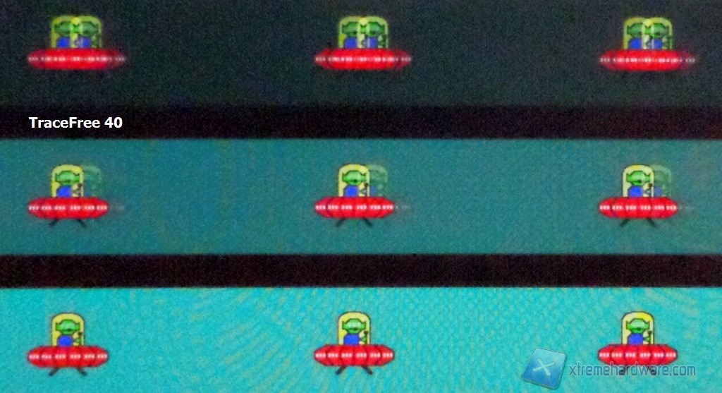 È praticamente inutile riportare questa volta il consueto test di PixPerAn (che digerisce anche male la risoluzione 4K): non vi sono differenze apprezzabili tra i vari setting. La media dei risultati però converge nella stessa direzione del test eseguito con l’ufo, dal quale si riesce a percepire meglio il diverso comportamento. I valori più spinti, 80 e 100, tendono a riportare un leggero reverse ghost, indice di un azionamento rapido dell’elettronica che induce un overshoot di segnale. I valori più bassi, 0 e 20, mantengono una certa presenza di ghosting e va da sé che quelli consigliati rimangono 40 e 60. In realtà è proprio dal valore 60 che si comincia a intravedere un alone leggermente più scuro: è comunque tutt’altro che evidente e non facile neanche da mostrare in foto. In gaming l’effetto è praticamente invisibile e riteniamo migliori i valori centrali. Ognuno potrà comunque scegliere il setting che riterrà più idoneo alle proprie preferenze.